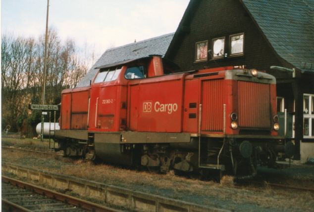 Der letzte Zug von DB Cargo auf der Sinntalbahn war auch gleichzeitig der letzte Zug der Wildflecken verlassen hat. Aufgrund eines Dammrutsches nach dem ehemaligen Haltepunkt Römershag wurde der Streckenabschnitt Bad Brückenau - Wildflecken ab dem 26.06.02 gesperrt.